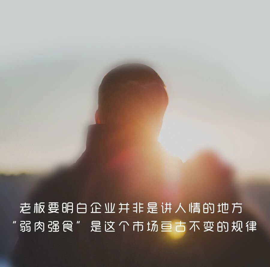 老板要明白企业并非是讲人情的地方,“弱肉强食”是这个市场亘古不变的规律,而如果老板无法摆正自己的位置,企业将无法持续发展和生存下去。